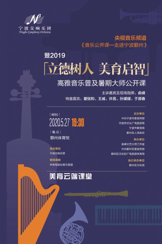 “立德树人 美育启智”专场音乐会由俞峰院长精心策划,把交响音乐与爱国主义相结合,以优秀的经典音乐致敬新时代。正如俞峰院长所说:“音乐能够反映一个民族的心声”。公开课由俞峰院长指挥宁波交响乐团浓情开讲。公开课分为“立德树人 红色经典”“管弦乐队的乐器”和“交响乐的发展”“百花齐放 洋为中用”四个篇章。