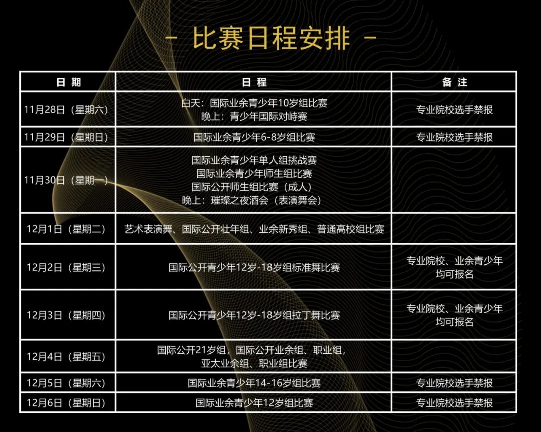 2020中国横琴中拉标准舞/拉丁舞国际锦标赛比赛日程表