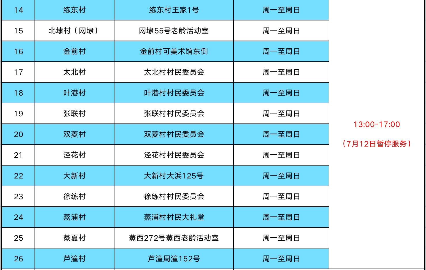由于我镇将于7月12日(周二)晚上组织开展一次全员核酸筛查,当天,全镇范围内“温暖家”常态化核酸便民采样点服务时段将作出相应调整,请市民们注意开放时间。具体变动如下:
