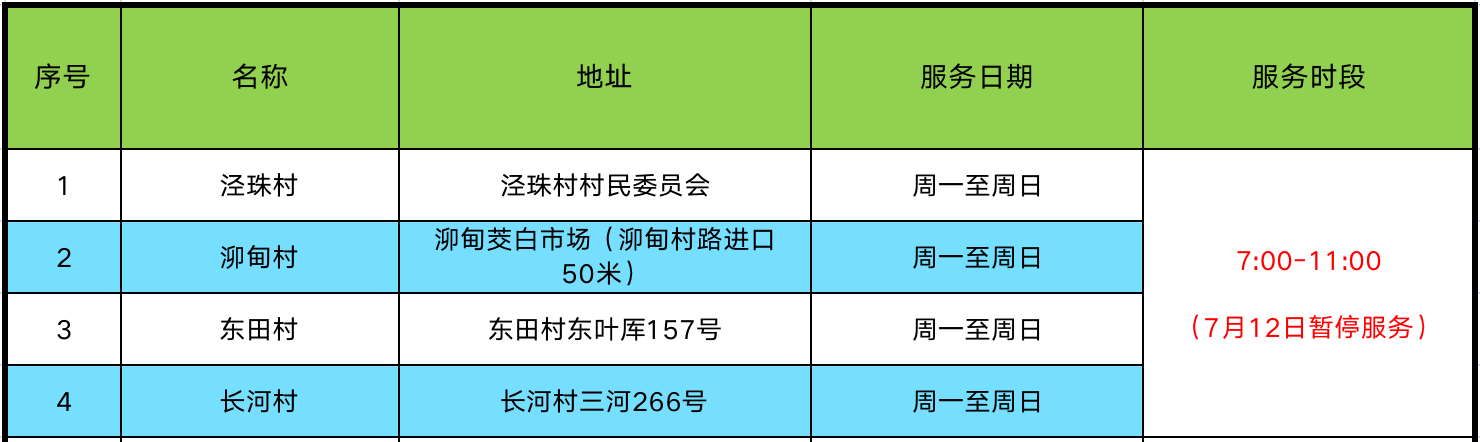 7月12日之后各核酸采样点开放时间恢复至原有安排。