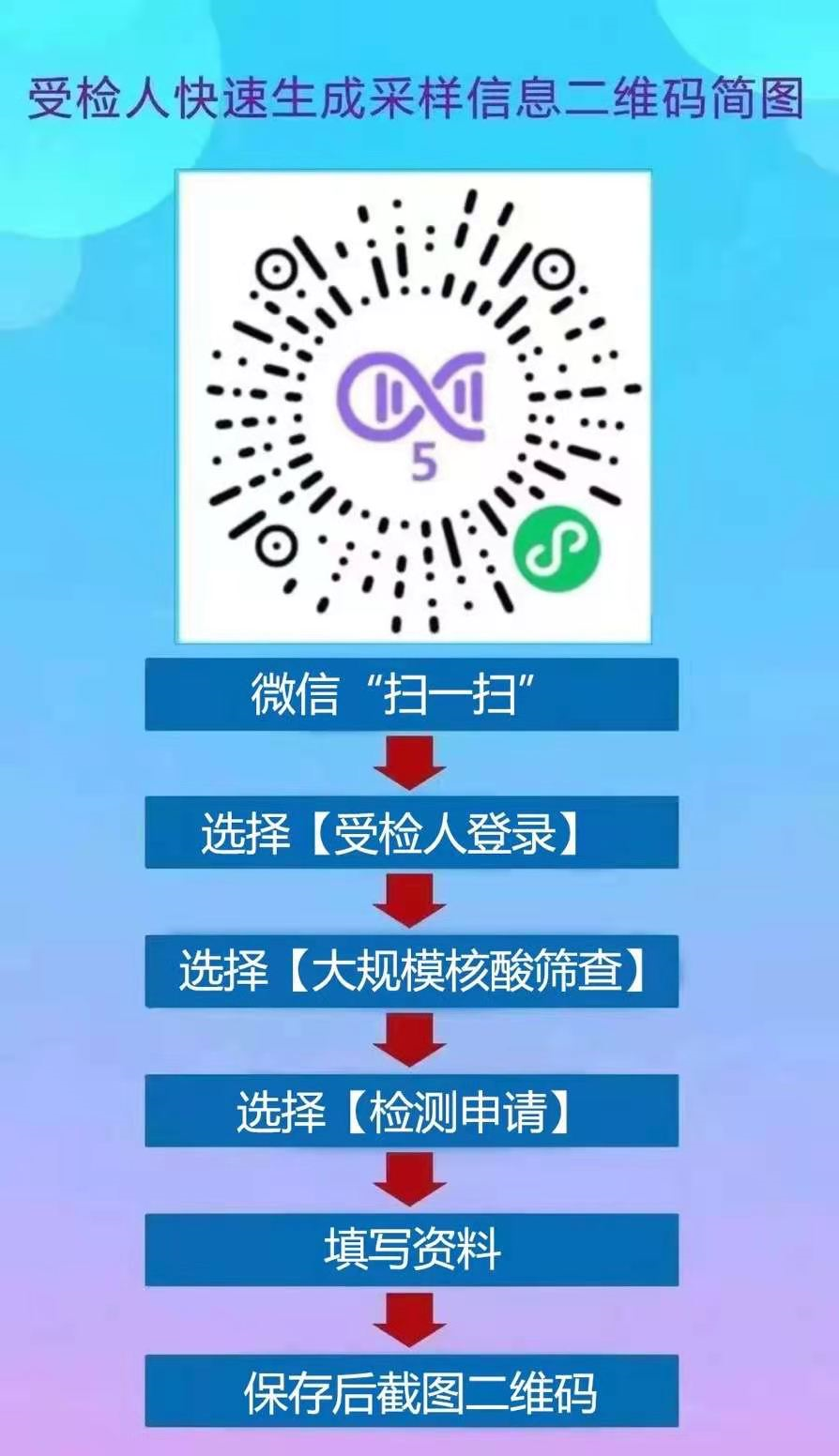 2、请提前搜索“粤核酸5”小程序在家录入身份信息,生成“葵花码”(之前已生成的葵花码依然有效),并截图保存。老人、小孩等无智能手机的人群可由家人代为登记,到采样点后直接向工作人员展示二维码截图,减少等候,现场检测带上有效身份证件供核验。