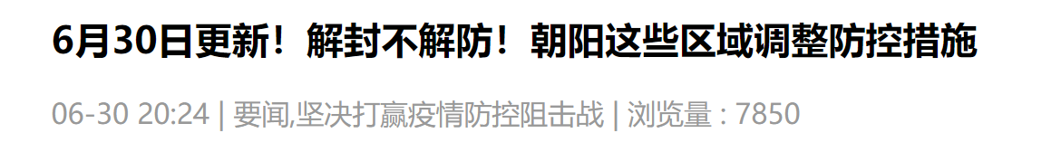 截至6月30日18时,经市区疾控专家综合研判,朝阳区以下区域调整防控措施。