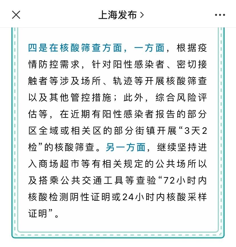 ◆ 另一方面,继续坚持进入商场超市等有相关规定的公共场所以及搭乘公共交通工具等查验“72小时内核酸检测阴性证明或24小时内核酸采样证明”。