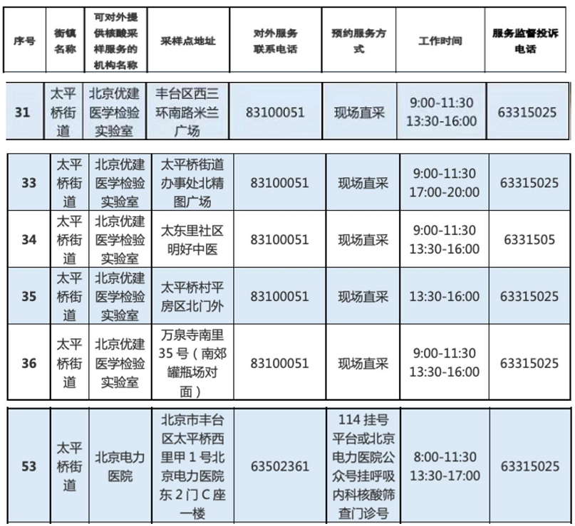 周边常态化核酸检测社会点位: