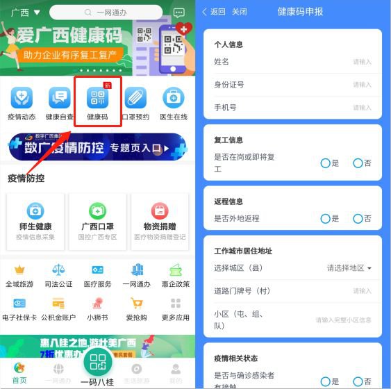 广西区内居民均可上“爱广西APP”进行健康登记,领取个人的专属健康码,凭码上岗通行。