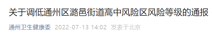 自2022年7月11日14时40分起,通州区潞邑街道珠江拉维小镇小区高风险区降为中风险区。