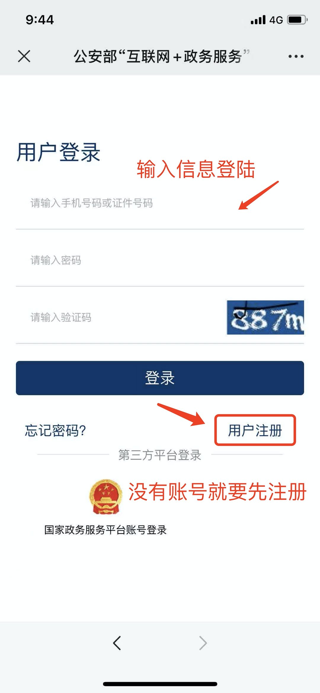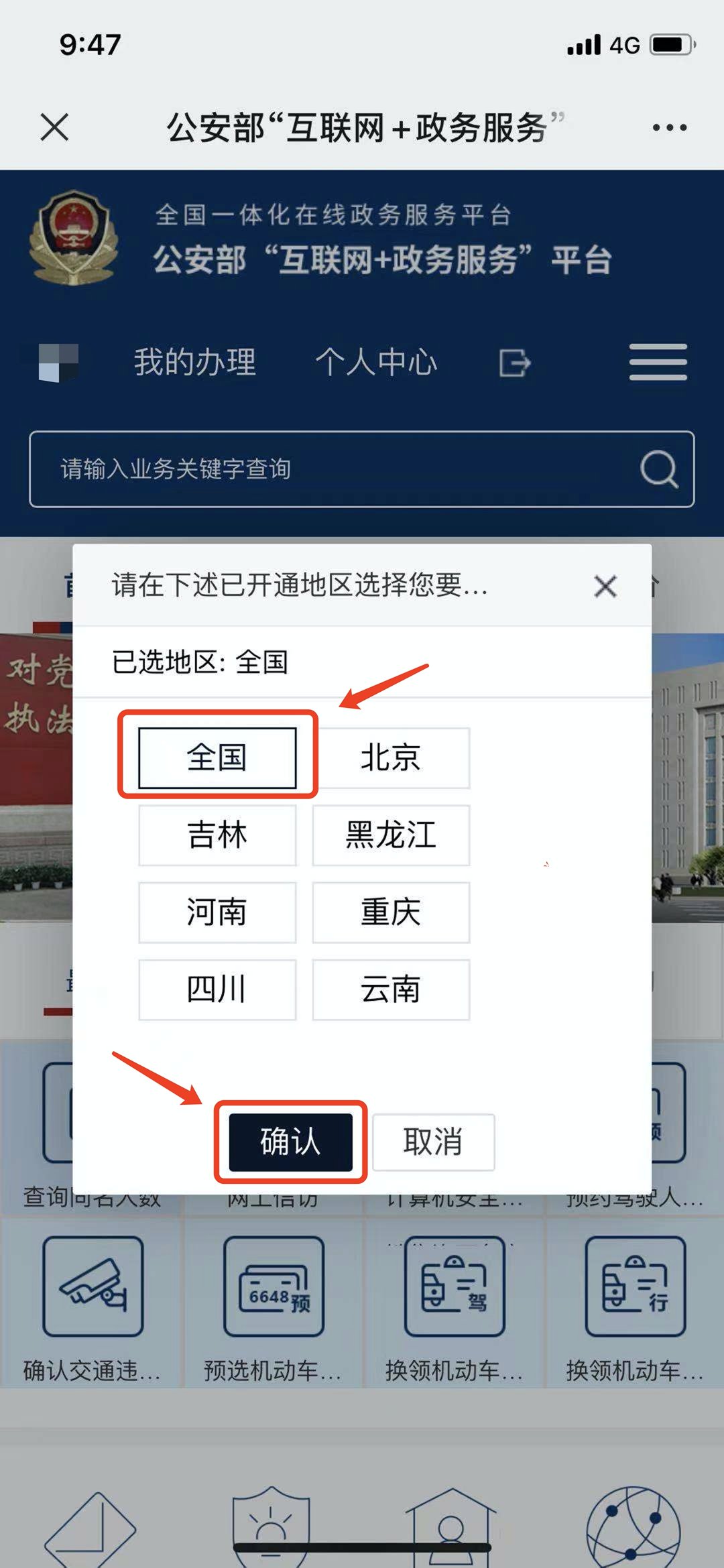 2.选择【全国】并点击【确认】,此时会跳转用户登陆界面,输入个人信息登陆。(如无账号的需要先注册)