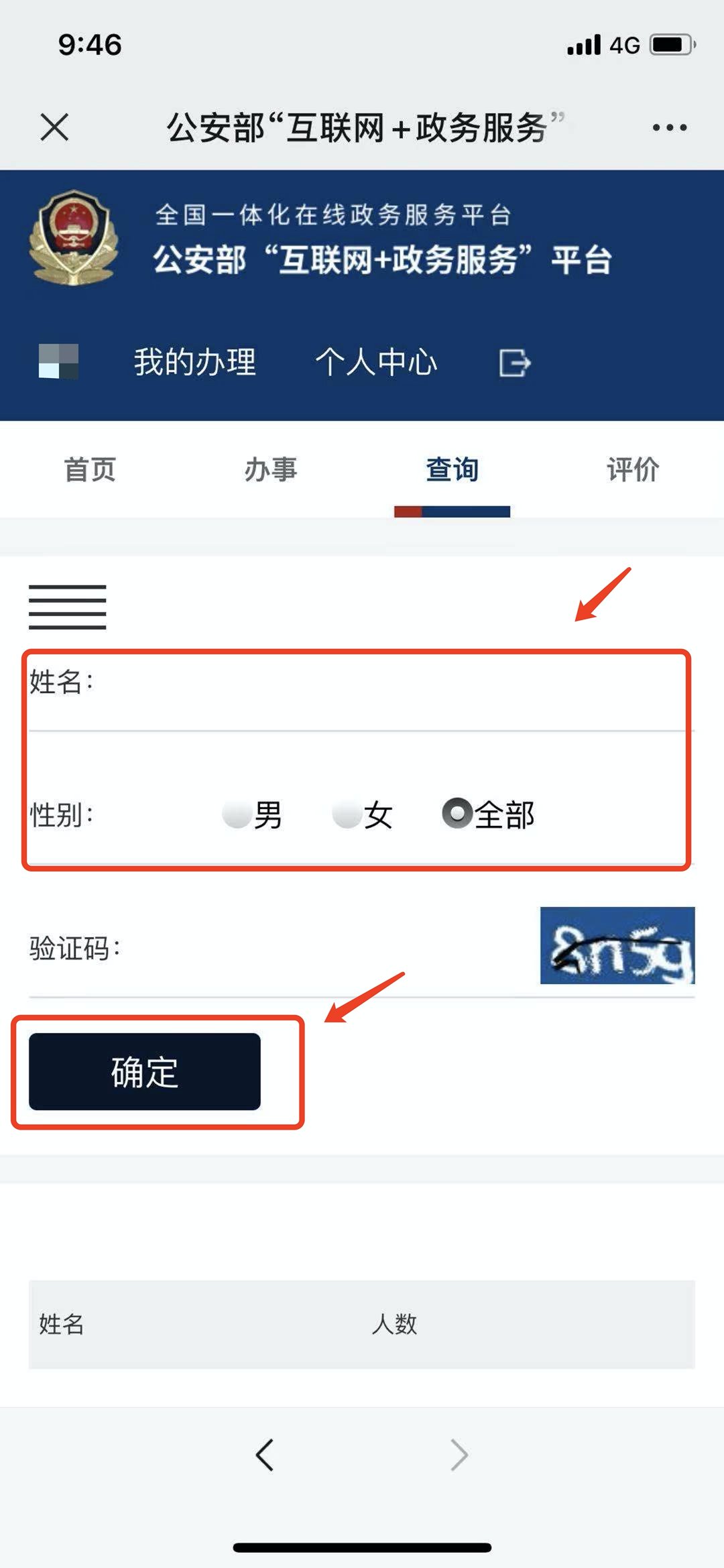 4.输入需要查询的姓名,选择性别(此处也可以选择全部)输入验证码即可获取全国范围内同名查询结果。