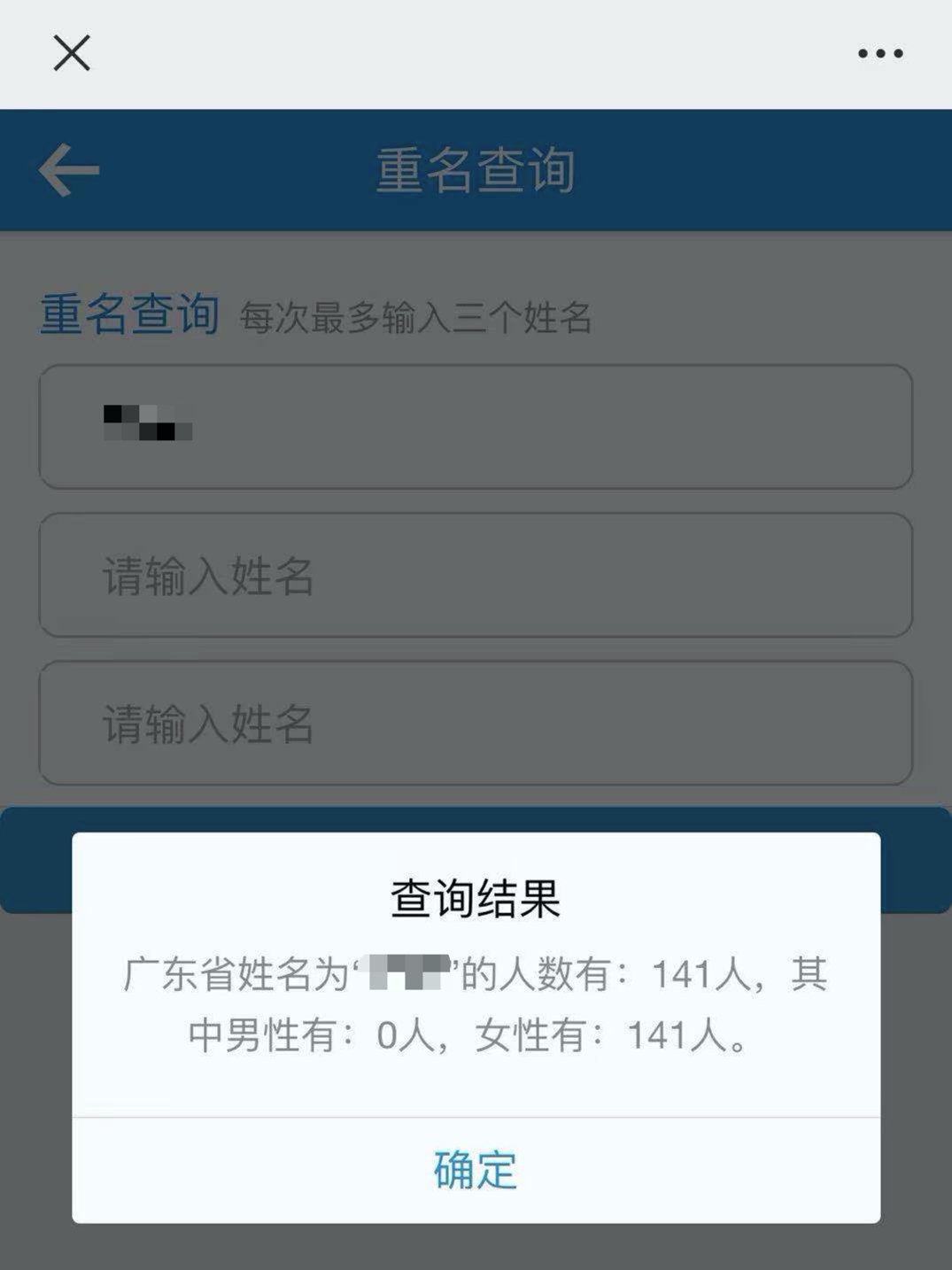 2.提交后即可查看查询结果,每次最多能查询三个姓名,还会显示性别哦~