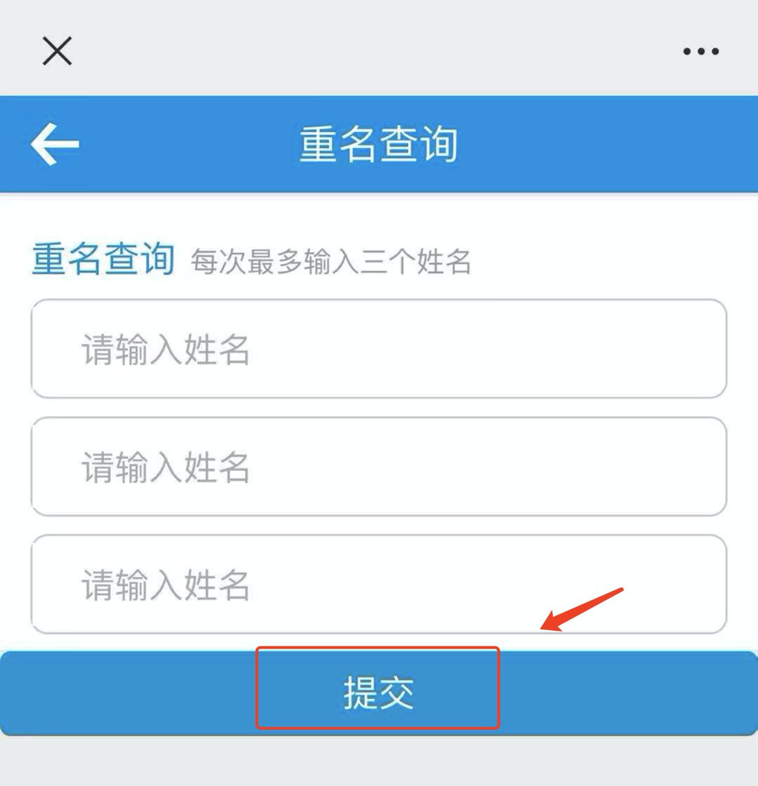 1.进入系统后输入所需查询的姓名,点击提交就可以查到多少人跟你同名。