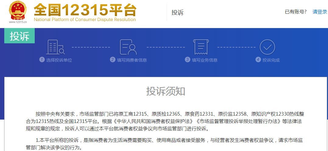 按照中央有关要求,市场监管部门已将原工商12315、原质检12365、原食药12331、原价监12358、原知识产权12330热线整合为12315热线及全国12315平台。根据《中华人民共和国消费者权益保护法》《市场监督管理投诉举报处理暂行办法》等法律法规和规章的规定,投诉人可以通过本平台就消费者权益争议向市场监管部门进行投诉。