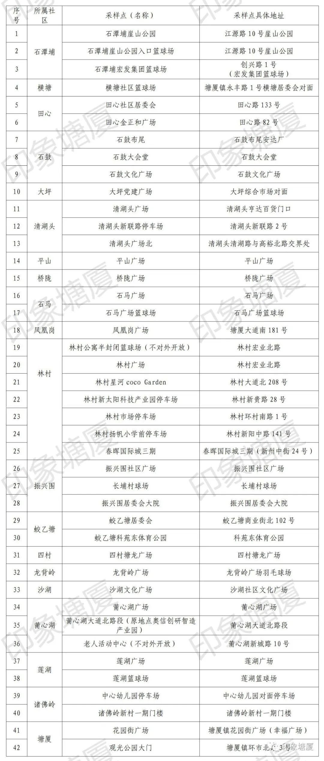 全镇以社区为网格安排区域核酸检测,请辖区内市民朋友到属地社区就近核酸采样点参加检测。(详见附表)