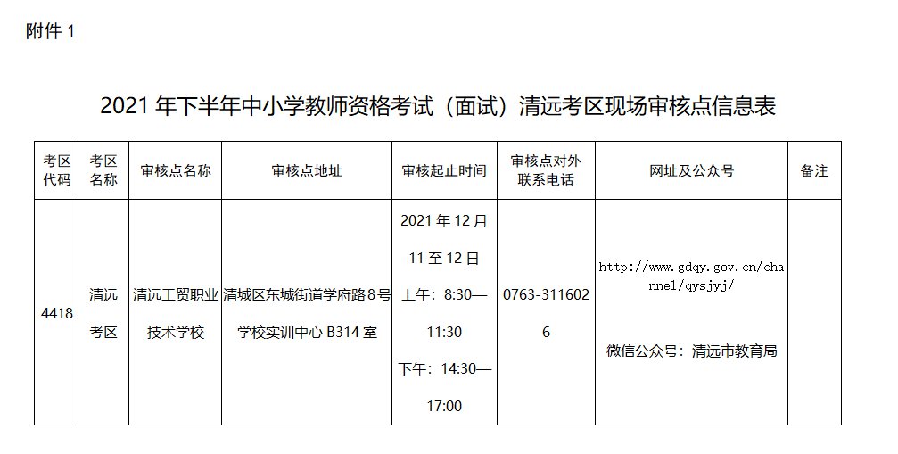 符合清远考区面试对象条件的考生完成网上报名后,应持相关证明材料在以下规定的时间和地点进行现场审核。