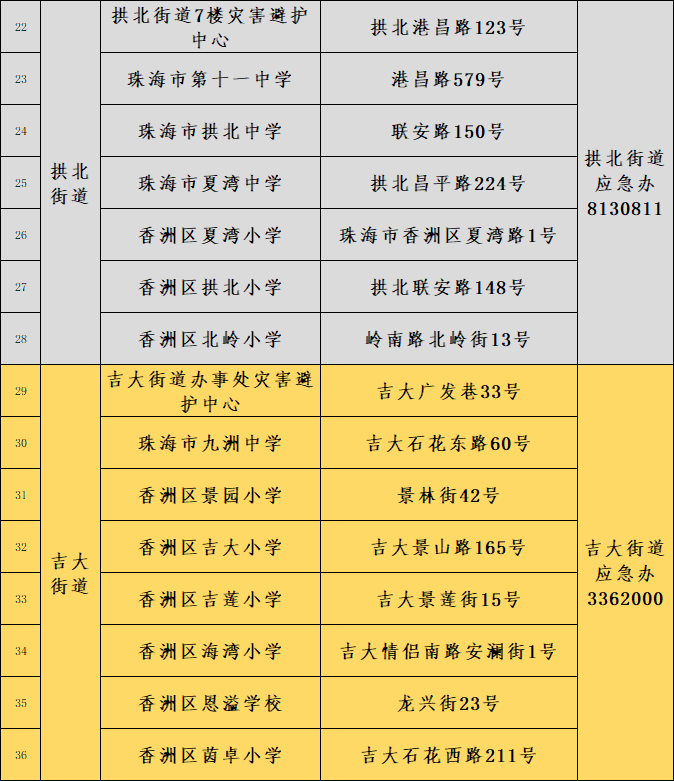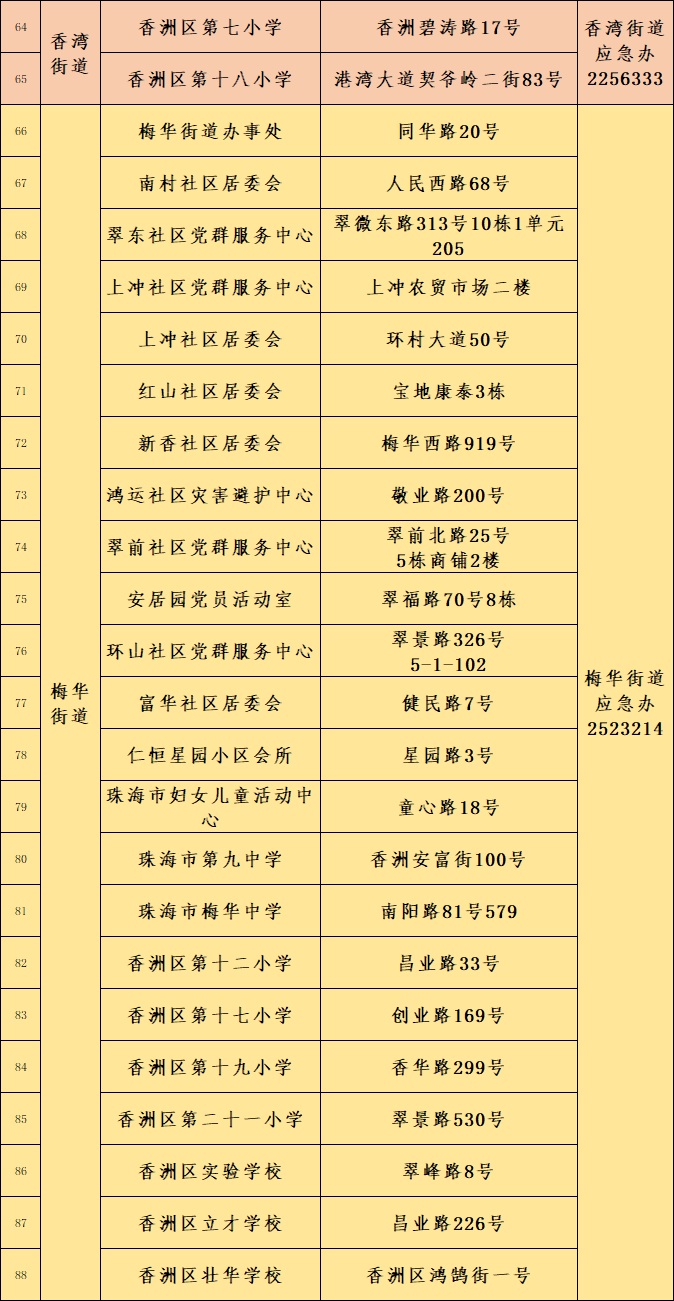 香洲区107处应急避难场所开放,有需要的市民留意!