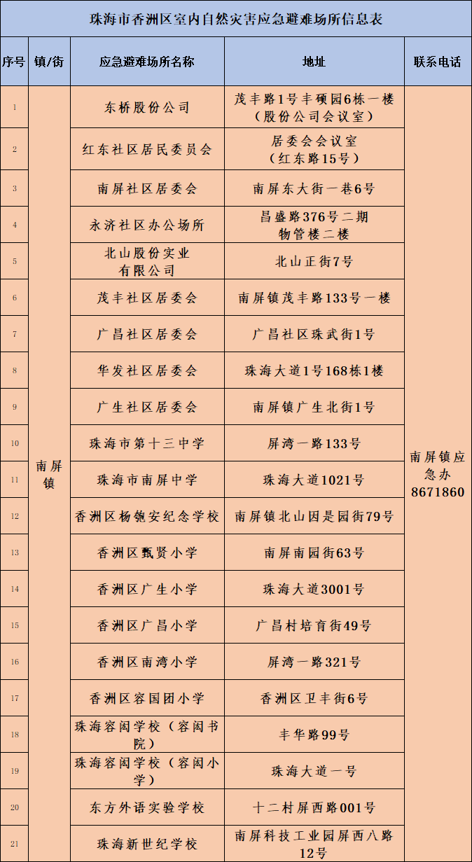 *横琴新区暂未公布应急避难所名单,有最新消息将持续更新!