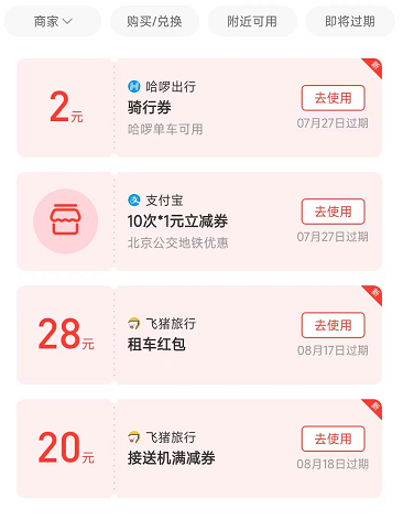 3、领取成功后,可以点击“立即使用”,去使用出行券