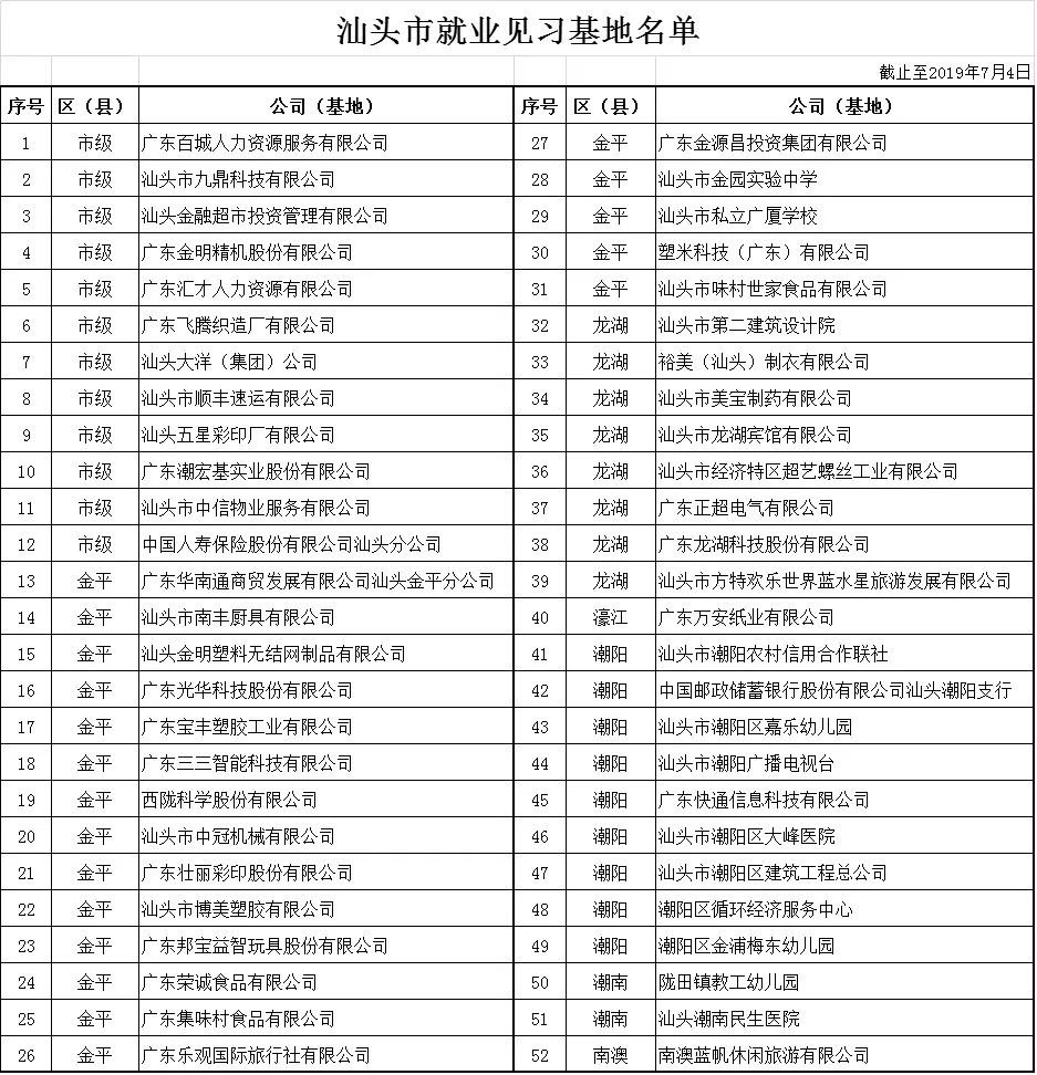 01由人社部门授予“汕头市就业见习基地”牌匾,优先享受人社公共就业部门推荐见习人员待遇。
