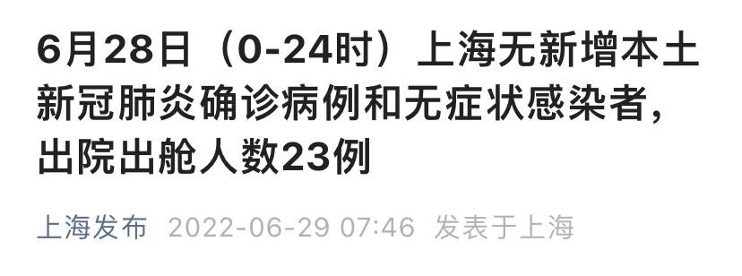 上海市卫健委6月29日通报:2022年6月28日0—24时,上海无新增本土确诊病例和无症状感染者。新增境外输入性新冠肺炎确诊病例1例和无症状感染者3例,均在闭环管控中发现。
