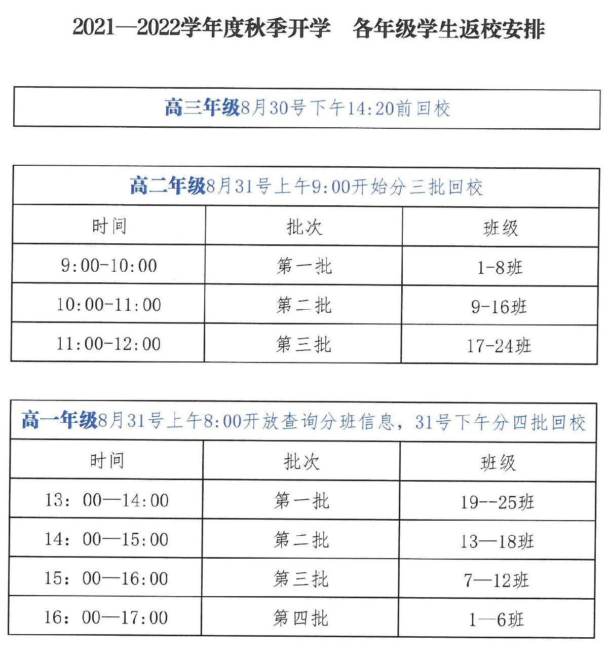 新学期将在9月1日正式开学,全校各年级学生分批错峰有序返校,具体安排如下。