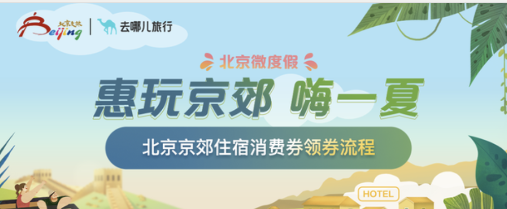消费者通过去哪儿旅行APP预订门头沟区、房山区、通州区、顺义区、昌平区、大兴区、怀柔区、平谷区、密云区、延庆区等10个郊区周日至周四(节假日除外)的酒店和乡村民宿时,可以线上申请领取、使用并抵扣住宿消费券。