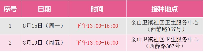 8月15日-21日金山卫镇新冠疫苗接种公告