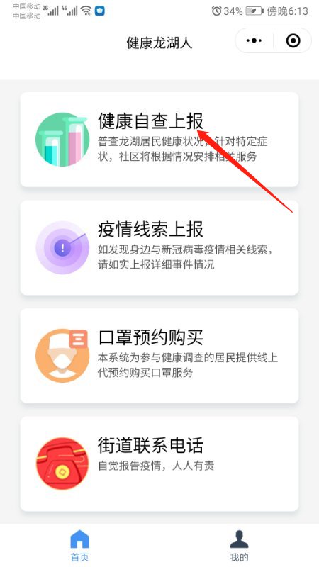 第二步:点击“健康自查上报”栏目,按照内容如实填写提交即可