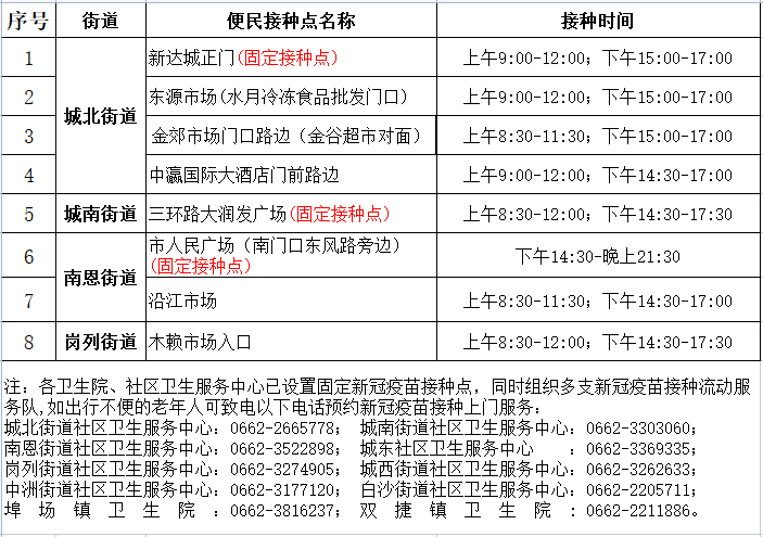 江城区4月29日新冠疫苗便民接种服务点安排如下: