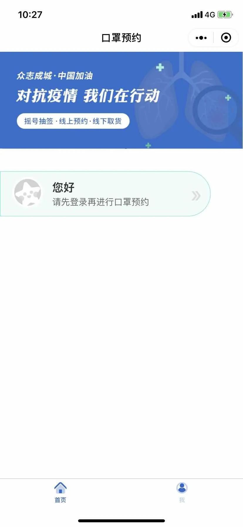 2、登录之后点击最下方的【首页】,再点击【进入口罩预约】服务页面