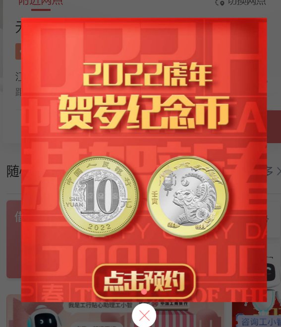 5.微信小程序:“工行服务”小程序-纪念币预约广告-点击进入预约。