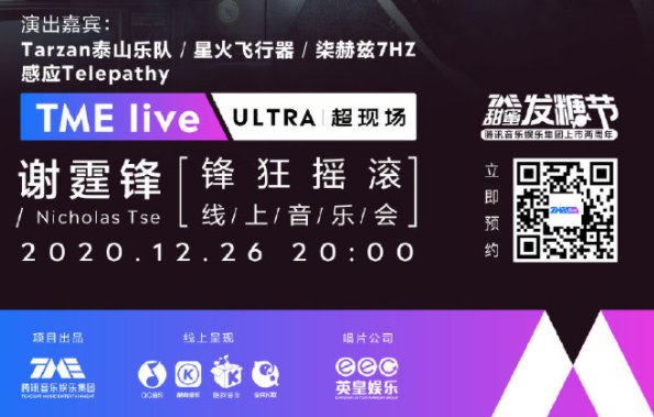 2020年12月26日20:00, 谢霆锋将携手众多重磅乐队同台演唱,一起来谢霆锋线上音乐会,释放满满活力一起度过2020最后一个星期!