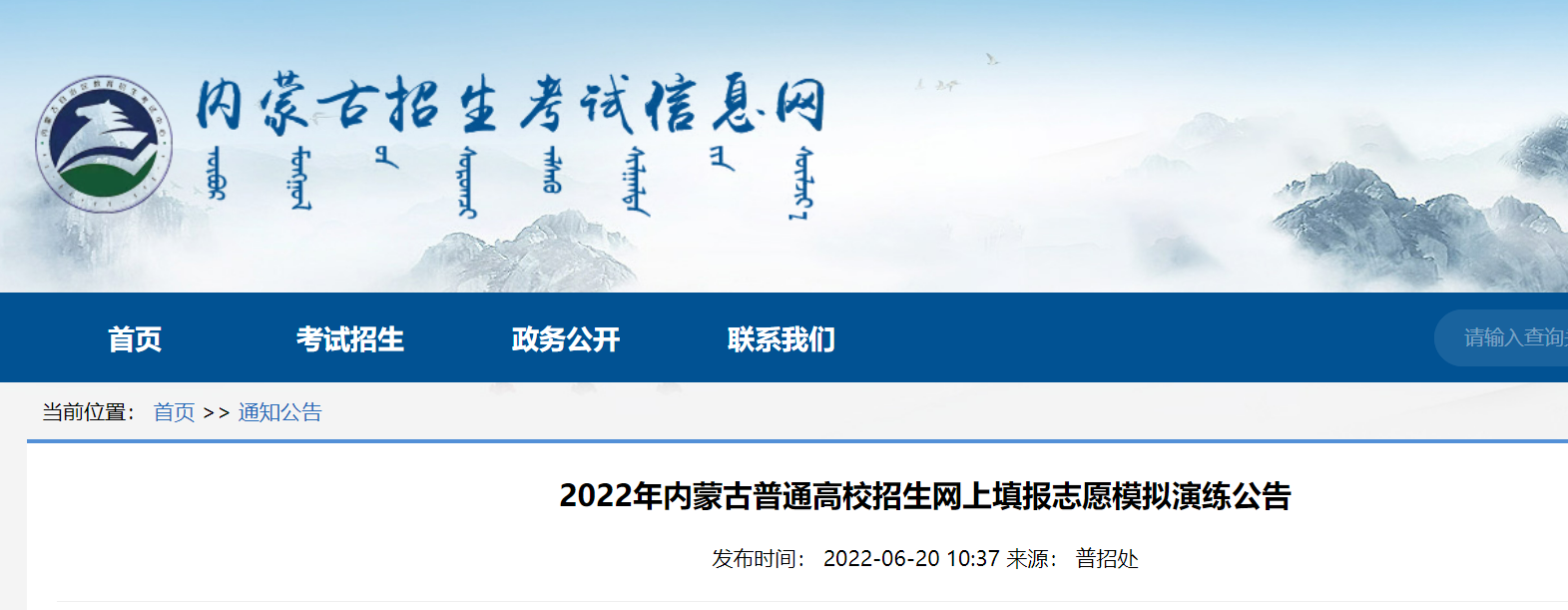 2022年内蒙古普通高校招生网上填报志愿模拟演练公告