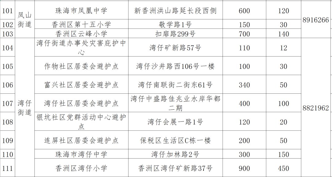 珠海台风各区避难所汇总