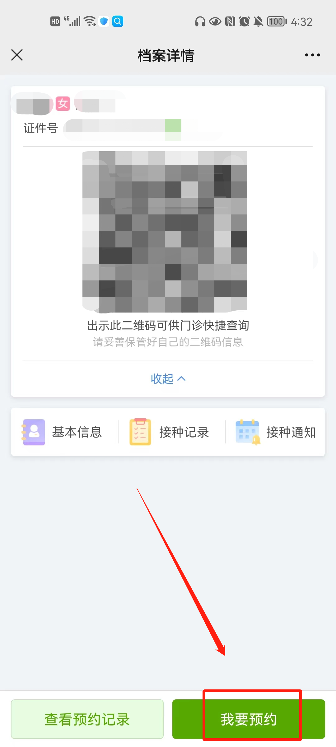 (二)未建档者点击“自主建档”,填写个人信息完成建档,已建档者进入本人档案,点击“我要预约”。