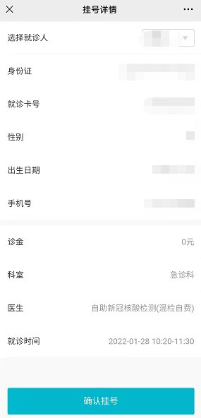 7、然后回出现挂号详情界面,点击“确认挂号”即可完成核酸检测预约。