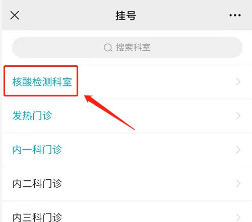 3、选择“核酸检测科室”;