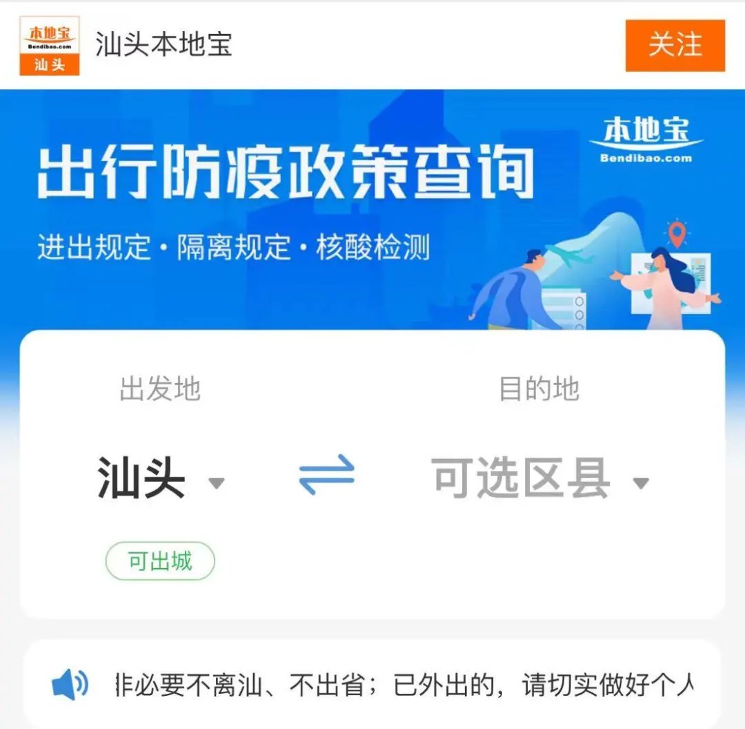 也可以进入本地宝出行防疫政策专题查询:点击进入