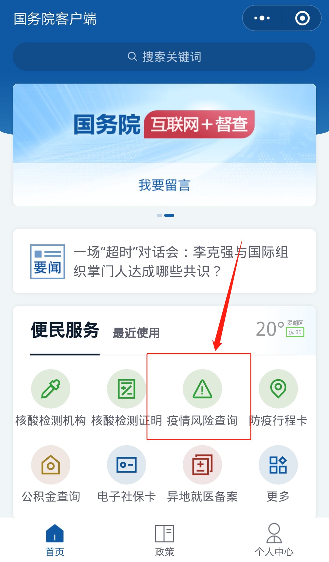 入口:手机点此处打开并长按扫码进入或者微信搜索【国务院客户端】
