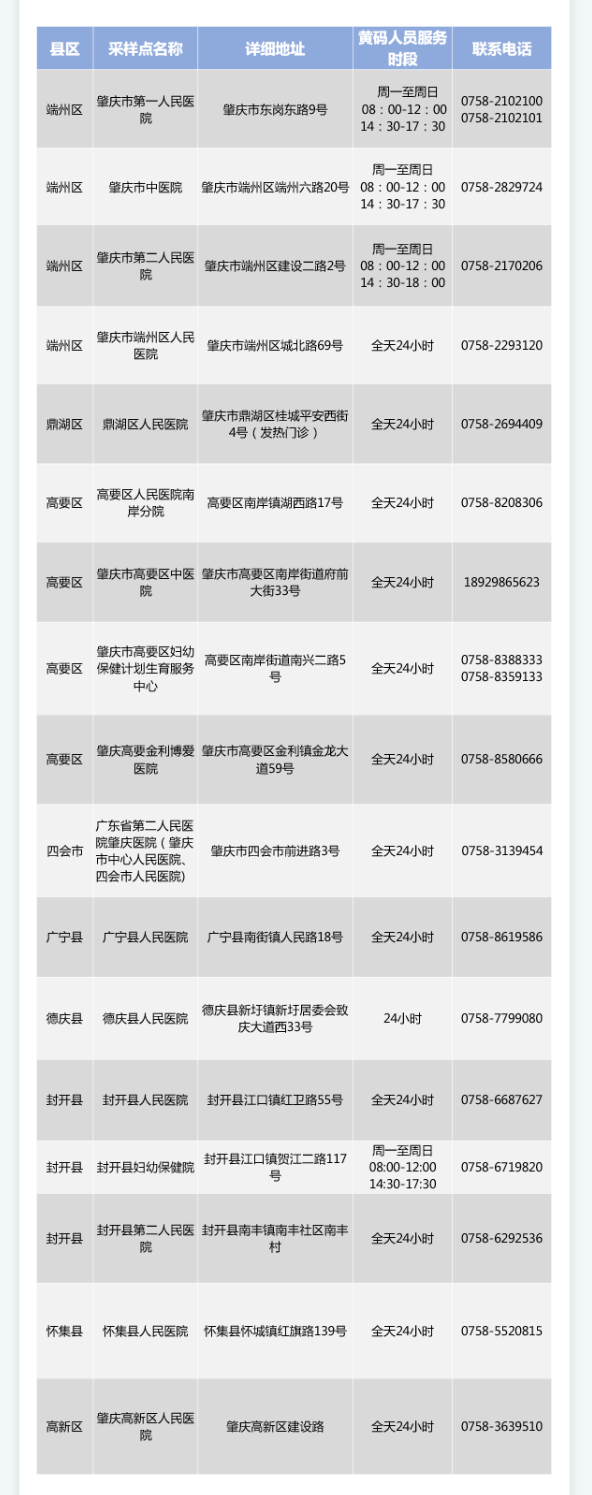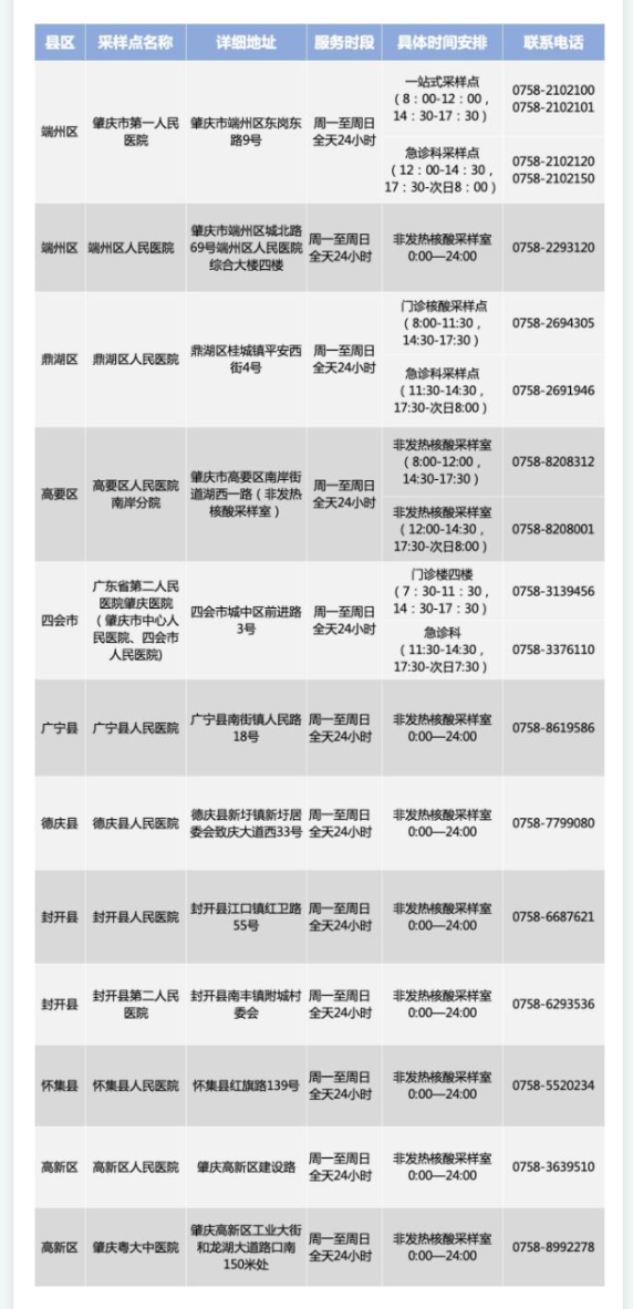 肇庆24小时常态化核酸检测采样点一览