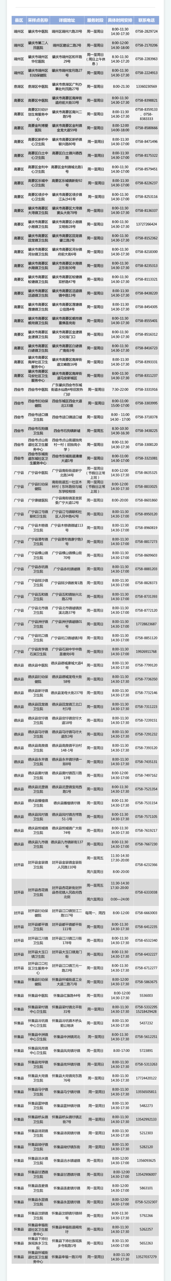 肇庆核酸检测点汇总一览(建议出发前提前电话咨询)