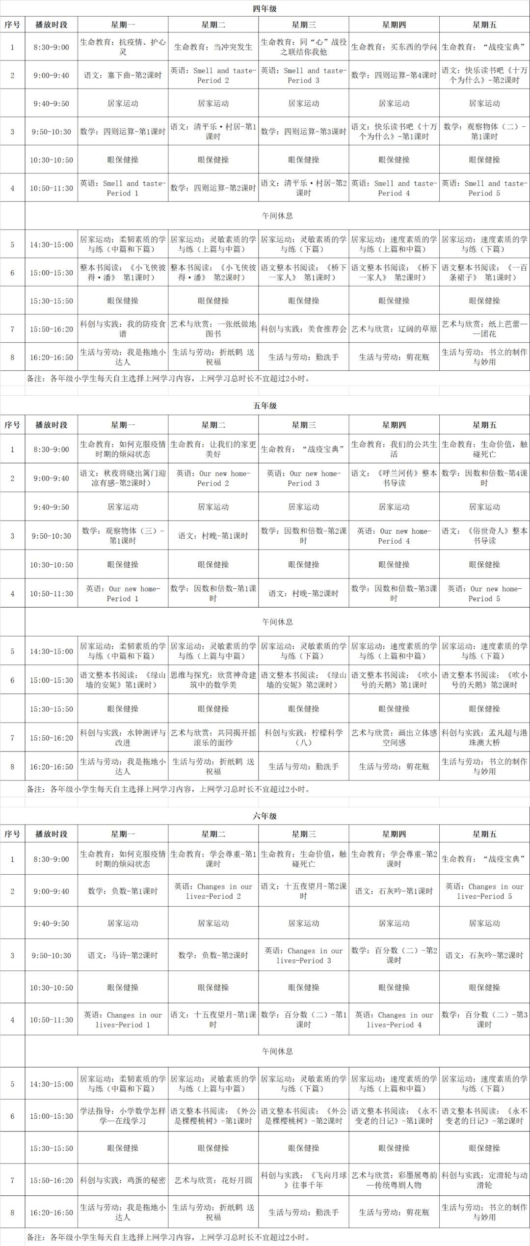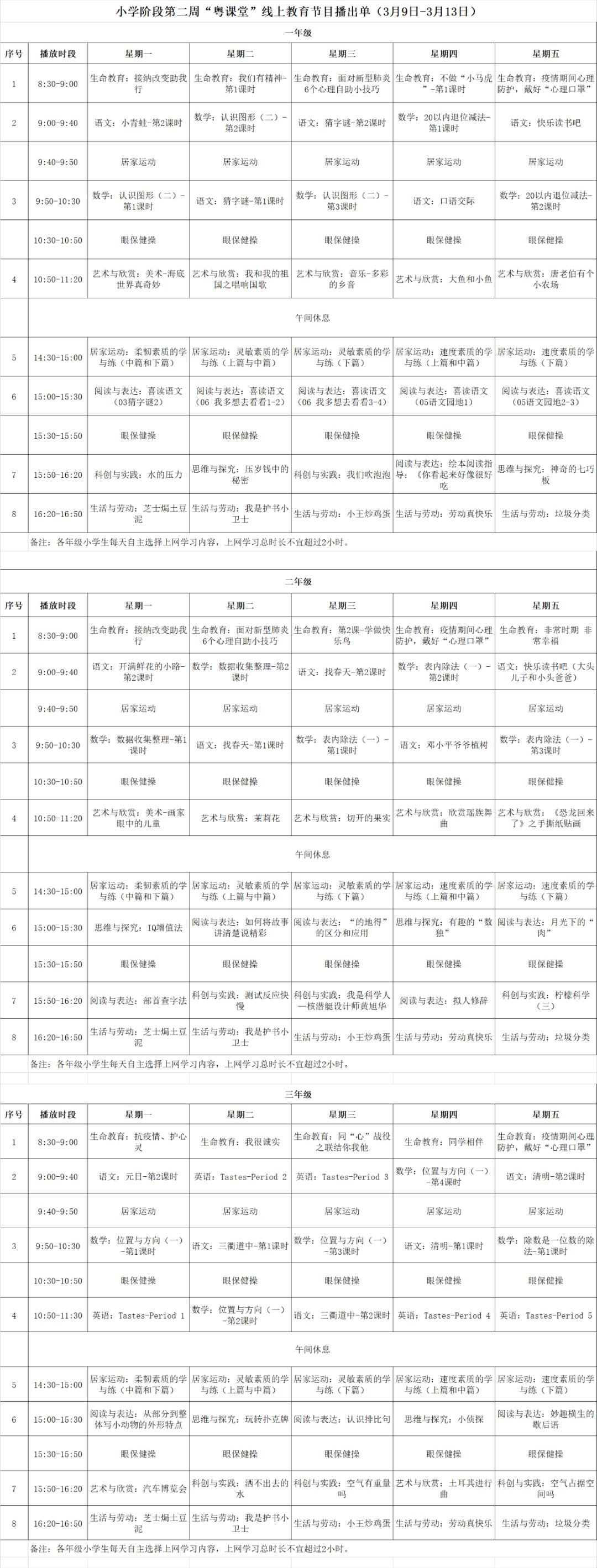 2020汕头粤课堂第二周课程表(粤课堂回放)