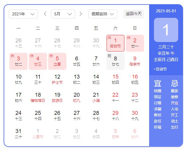 劳动节:5月1日至5日放假调休,共5天。4月25日(星期日)、5月8日(星期六)上班。