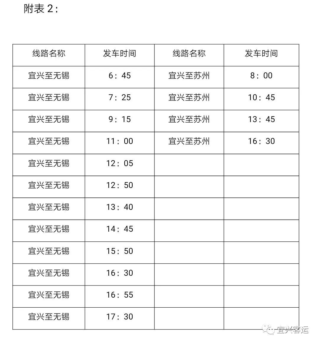 二、2月25日起,宜兴至无锡(快客班次)、宜兴至苏州(南站),采用临时班次运行<见附表2>;