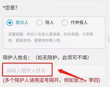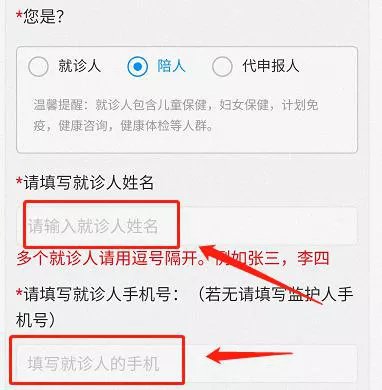 4.健康申报卡支持一卡多人。如遇家长带小孩就诊等特殊情况时,可填写本人信息后选择自己身份(就诊人、陪人),再按照要求填写陪护人或就诊人信息。
