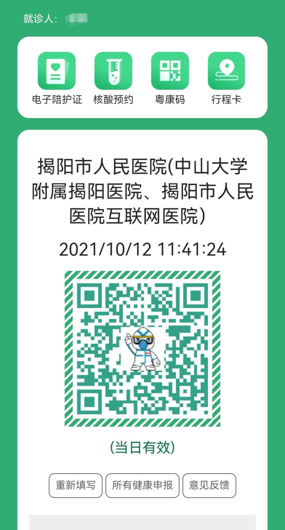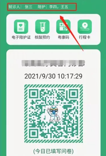 6.提交后的“健康申报卡”将包含就诊人、陪护人等信息。