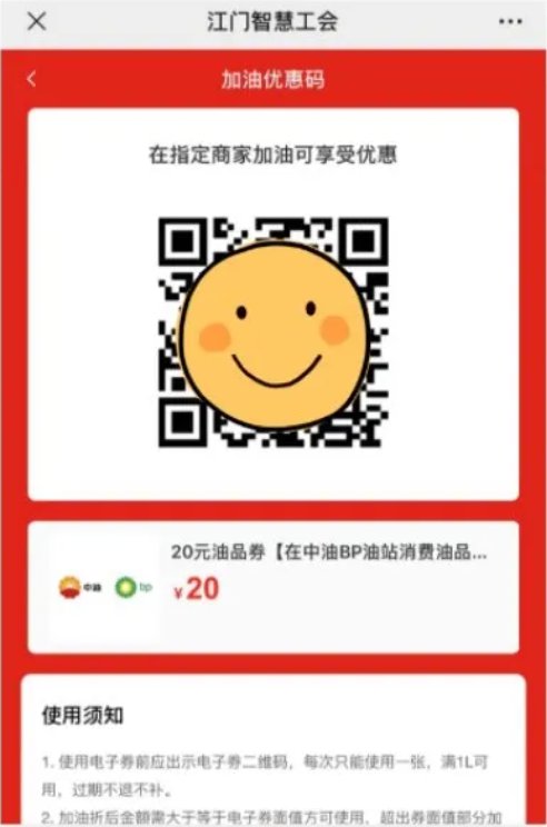 积分可在江门智慧工会优惠商家使用,也可以用于手机话费充值和兑换中油bp加油券。