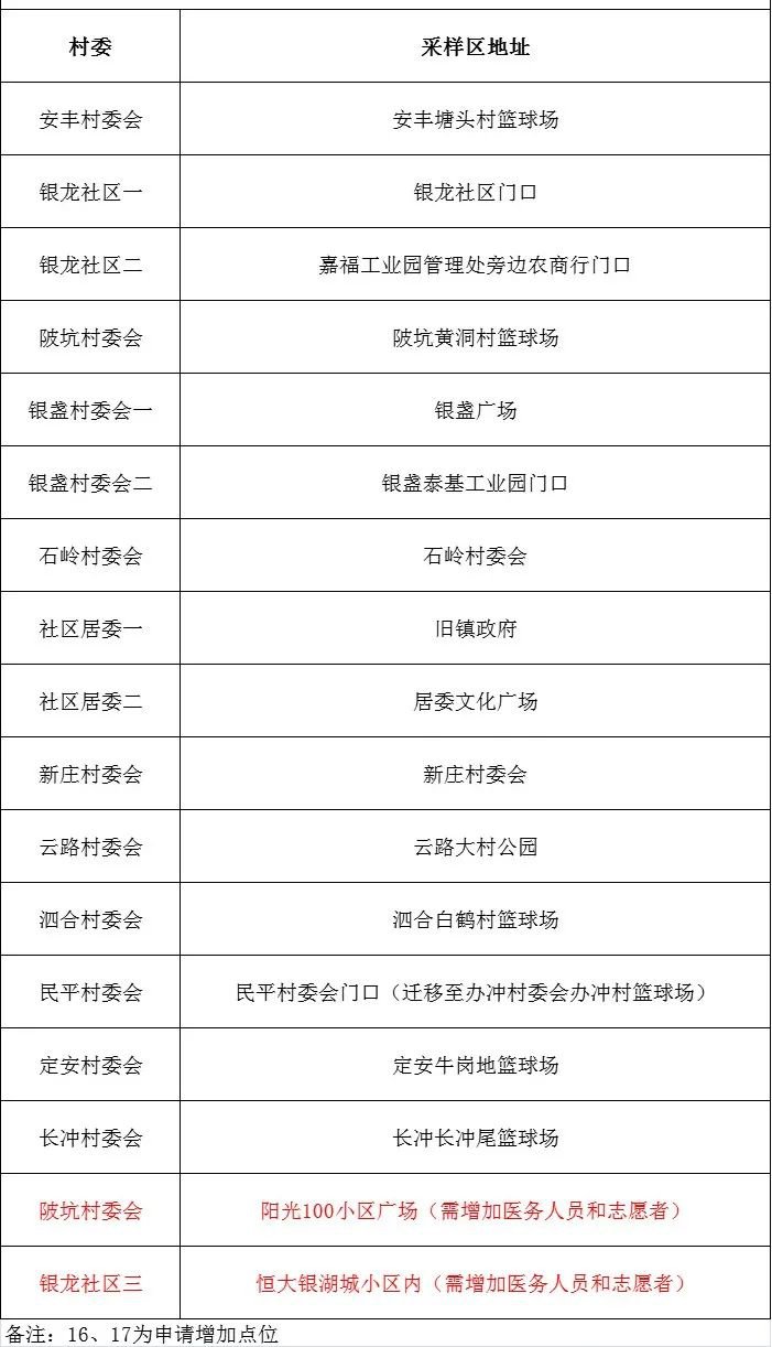 | 村/社区 | 咽拭子采样场所选址 |