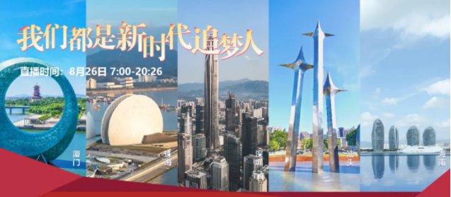 8月26日,珠海经济特区建立40周年之际,深圳、珠海、汕头、厦门、海南五大经济特区主流新媒体将进行首次联动,开启《我们都是新时代追梦人》大型直播,届时将在新华社客户端、深圳特区报读特客户端、珠海传媒集团观海客户端、汕头融媒集团汕头橄榄台客户端、厦门日报社潮前智媒新闻客户端、海南日报客户端同步推出。