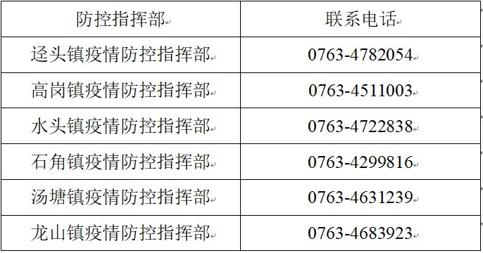 各镇疫情防控指挥部联系方式