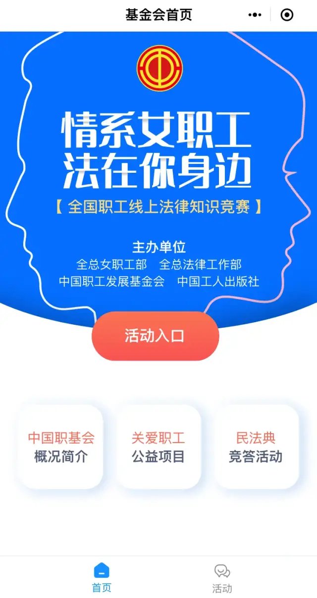 2021年是“八五”普法开端之年和《民法典》实施第一年,为推动《民法典》、性别平等和女职工权益保护法律法规宣传普及,全总女职工部、全总法律工作部、中国职工发展基金会、中国工人出版社联合组织开展“情系女职工 法在你身边”全国职工线上法律知识竞赛活动。