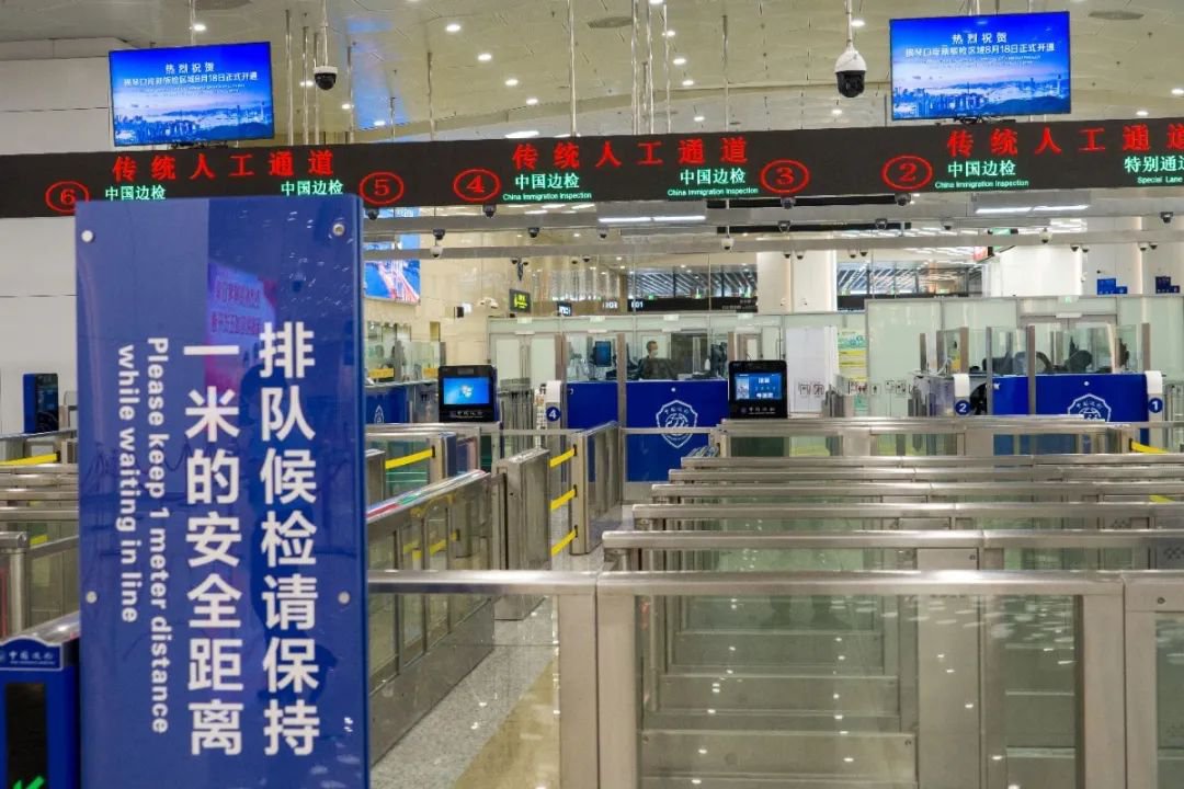 旅检大厅二楼为入境层(澳门-横琴),设置合作自助通道43条,传统人工通道7条、合作人工通道4条。